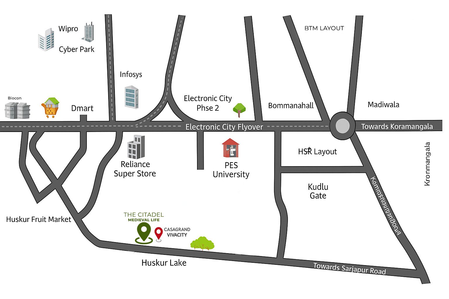 Located beside one of Bangalore's finest lakes, just 5 minutes from Electronic City Metro & Toll, next to Casagrand Vivacity and Waterford Villas.